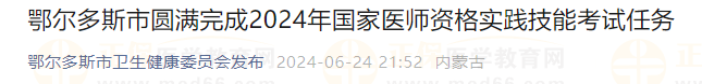 內(nèi)蒙古鄂爾多斯市2024年國家醫(yī)師資格實(shí)踐技能考試任務(wù)圓滿完成