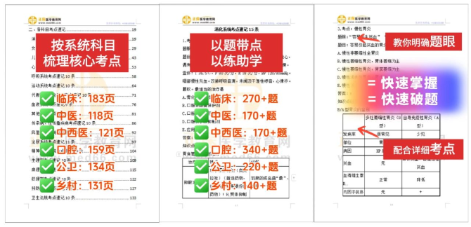 各科目、系統(tǒng)重難點梳理,并進行對應(yīng)的星級標(biāo)注!哪里是考試重難點,一目了然!再配合高頻考點+習(xí)題部分,反向自測,找到薄弱處,合理安排備考計劃,讓你有的放矢,哪里重要學(xué)哪里,哪里薄弱學(xué)哪里!