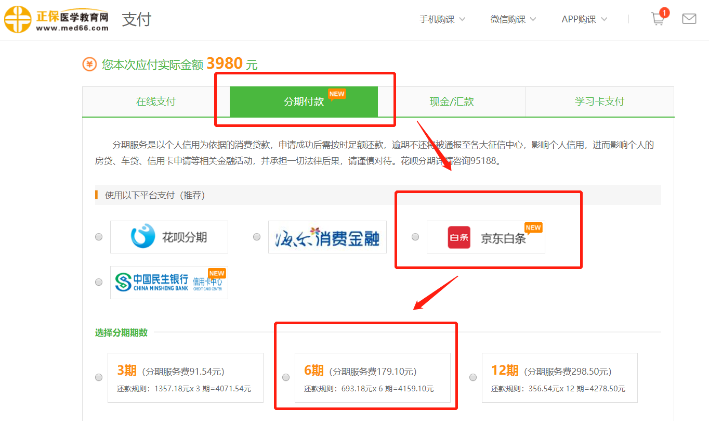 注意事項(xiàng):只有6期分期購(gòu)買服務(wù)費(fèi)為0元,其他期數(shù)暫時(shí)沒有優(yōu)惠。