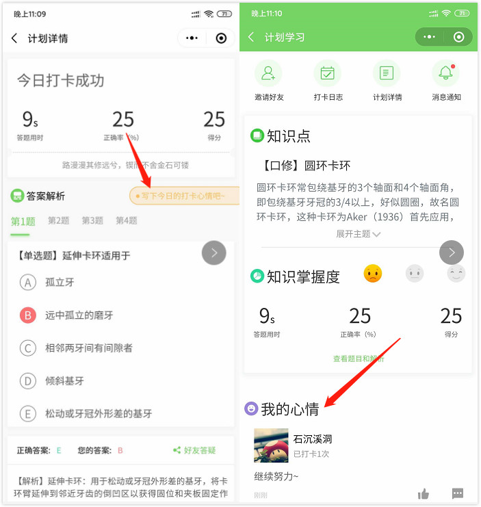 打卡第四步:每天完成做題,還可以發(fā)表心情哦,跟一起備戰(zhàn)的考友切磋!