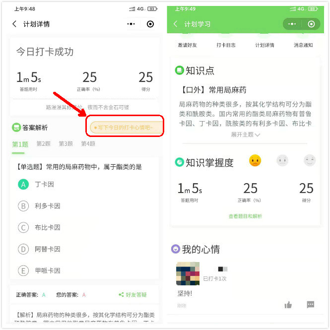 打卡第四步:每天完成做題,還可以發(fā)表心情哦,跟一起備戰(zhàn)的考友切磋!
