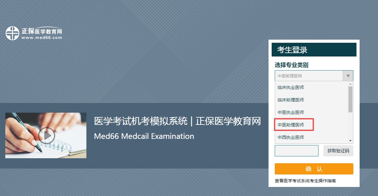 下面是醫(yī)學(xué)考試機(jī)考模擬系統(tǒng)操作步驟(以“中醫(yī)助理醫(yī)師為例”):
