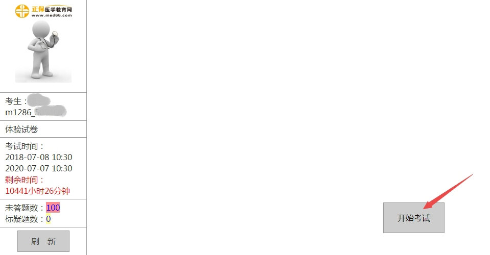 第六步:進(jìn)入考試頁面之后,點擊“開始考試”即可進(jìn)入答題界面。