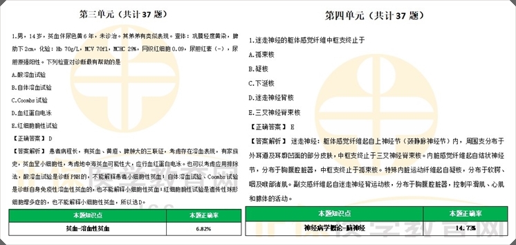 2021年口腔助理醫(yī)師《錯題集》總結(jié)整理了兩個單元的錯題,錯題下方用表格貼心標(biāo)注了該題目的正確率、正確答案和解析,以及覆蓋的易錯考點,考生可根據(jù)錯題率參考復(fù)習(xí)相應(yīng)易錯考點。