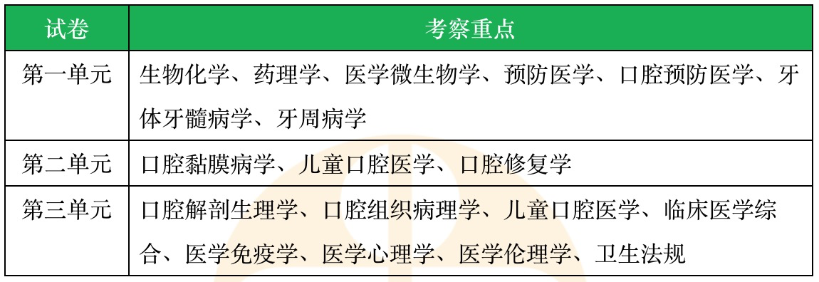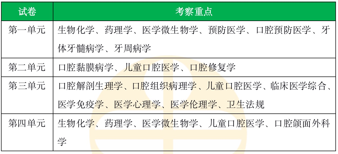 2021年口腔助理醫(yī)師資格考試《錯題集》總結(jié)整理了各個單元的重點考核科目分布,展示如下: