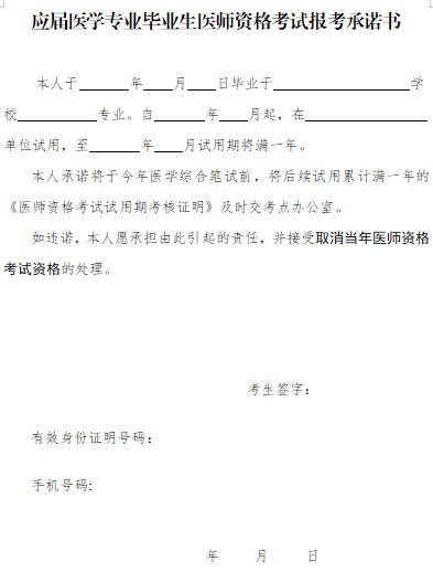 附件下載:應(yīng)屆醫(yī)學(xué)專業(yè)畢業(yè)生醫(yī)師資格考試報考承諾書