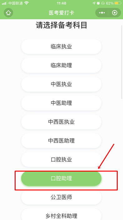 第二步:掃描之后會(huì)進(jìn)入如下截圖頁面,選擇您的備考科目,如口腔助理醫(yī)師;