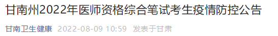 甘南州2022年口腔助理醫(yī)師資格綜合筆試考生疫情防控公告
