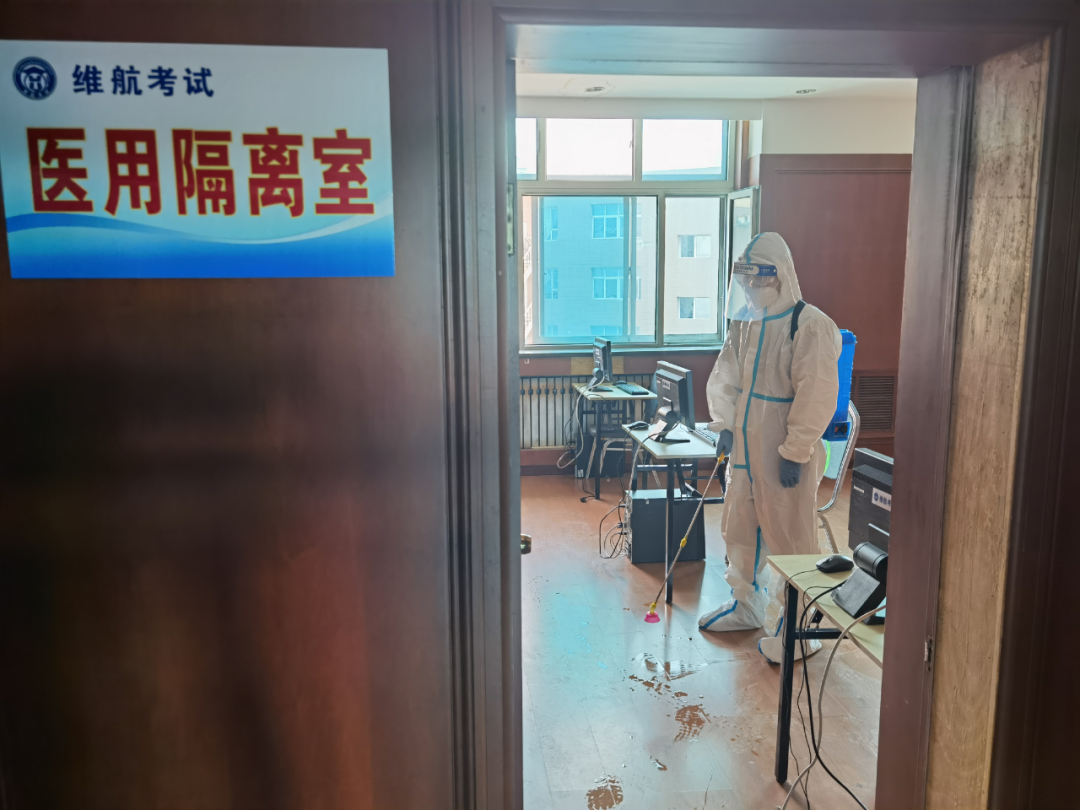 按照吉林省衛(wèi)生健康委文件要求,為確保考生和工作人員的身體健康和生命安全,切實(shí)加強(qiáng)疫情應(yīng)對(duì)準(zhǔn)備,全面提升應(yīng)急處置能力,長(zhǎng)春考點(diǎn)在市衛(wèi)健委和寬城區(qū)、南關(guān)區(qū)疾控中心的協(xié)同指導(dǎo)下,在市急救中心的支持下,于8月18日上午分別在吉林維航考試服務(wù)和長(zhǎng)春起航教育兩個(gè)考場(chǎng)開(kāi)展了考前疫情防控全流程模擬演練。