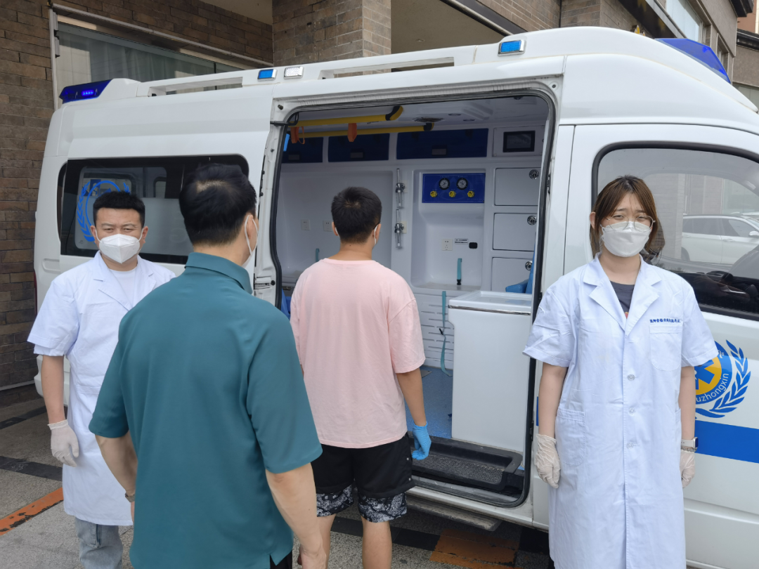 疑似病例通過(guò)負(fù)壓急救車轉(zhuǎn)運(yùn)至定點(diǎn)醫(yī)院
