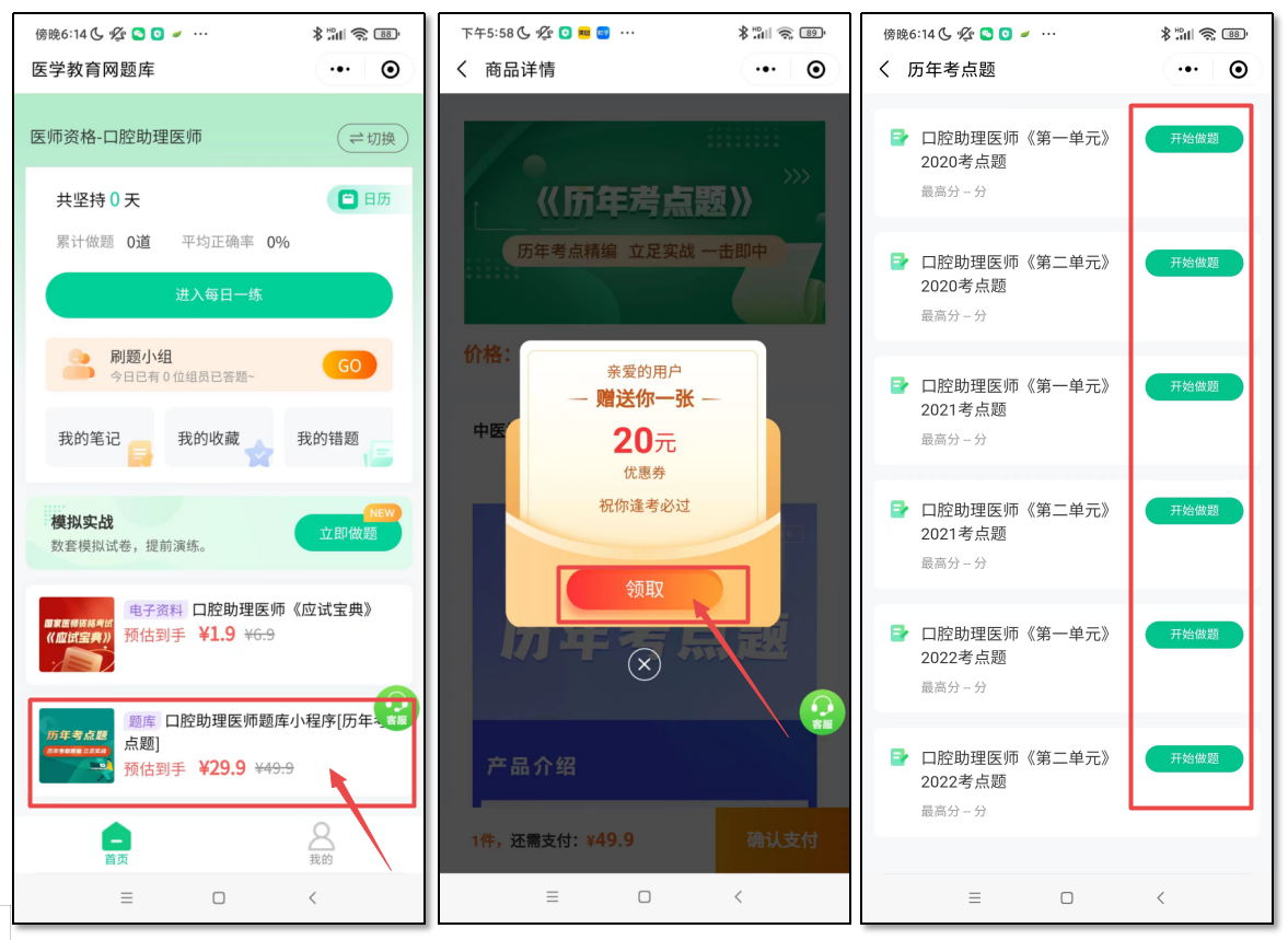 2、選擇“口腔助理醫(yī)師”,下滑到底部選擇“口腔助理醫(yī)師題庫小程序[歷年考點(diǎn)題]”,到手價(jià)僅需29.9元!