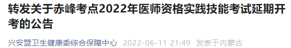 興安盟考點在赤峰考點參加2022年國家醫(yī)師資格實踐技能考試的考生延期開考