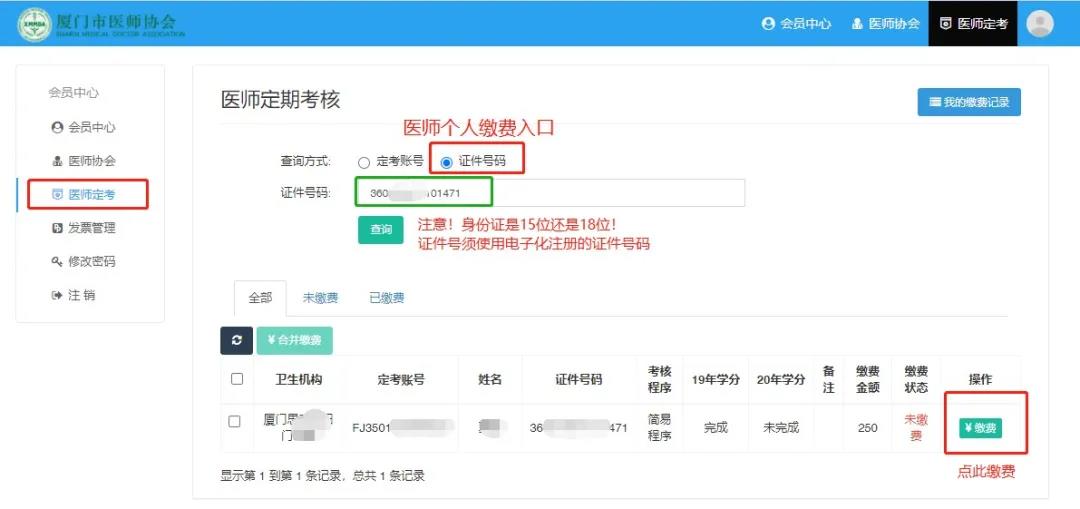 廈門考點(diǎn)2019-2021年度醫(yī)師定期考核考核內(nèi)容未達(dá)標(biāo)人員繳費(fèi)操作指引(電腦端)