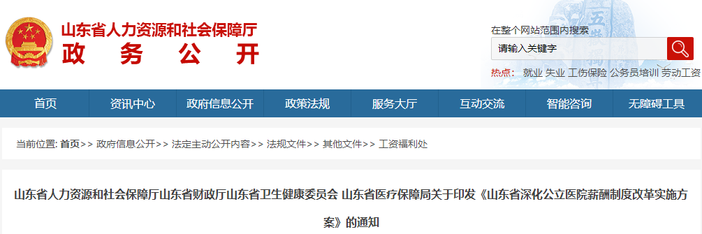 《山東省深化公立醫(yī)院薪酬制度改革實施方案》通知原文查看!