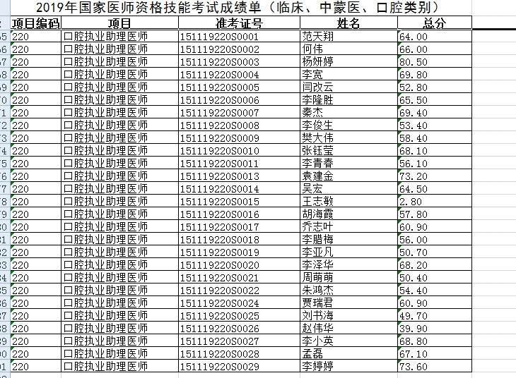 2019年國家實踐技能考試口腔(1)(錫盟考點)考生成績表(點擊下載)