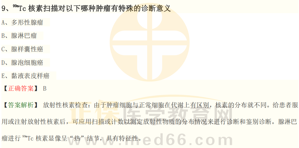 以上就是醫(yī)學(xué)教育網(wǎng)關(guān)于“放射性核素檢查,核素的分布就不同,快來測測水平吧!”的相關(guān)介紹,希望能夠幫助到大家,更多資訊盡在醫(yī)學(xué)教育網(wǎng)口腔助理醫(yī)師欄目!