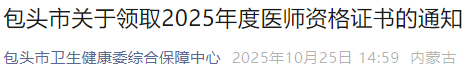 內(nèi)蒙古包頭關(guān)于領(lǐng)取2025年口腔助理醫(yī)師證書的通知