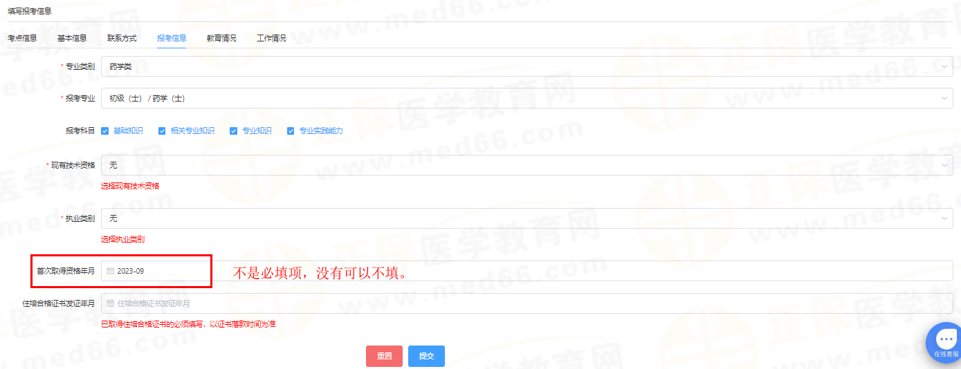 首次取得資格年月:填“初級(jí)藥、技士資格證”取得時(shí)間(非必填)。