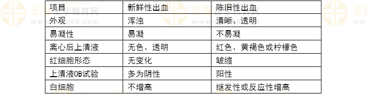 【解答】腦脊液新鮮性出血與陳舊性出血的鑒別(見下表)