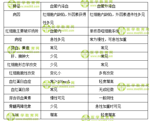 1.血管內(nèi)與血管外溶血的鑒別(見下表)