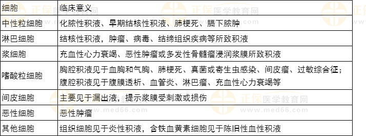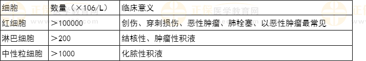 (2)臨床意義:漏出液中細胞較少,以淋巴細胞和間皮細胞為主,滲出液中細胞種類較多。