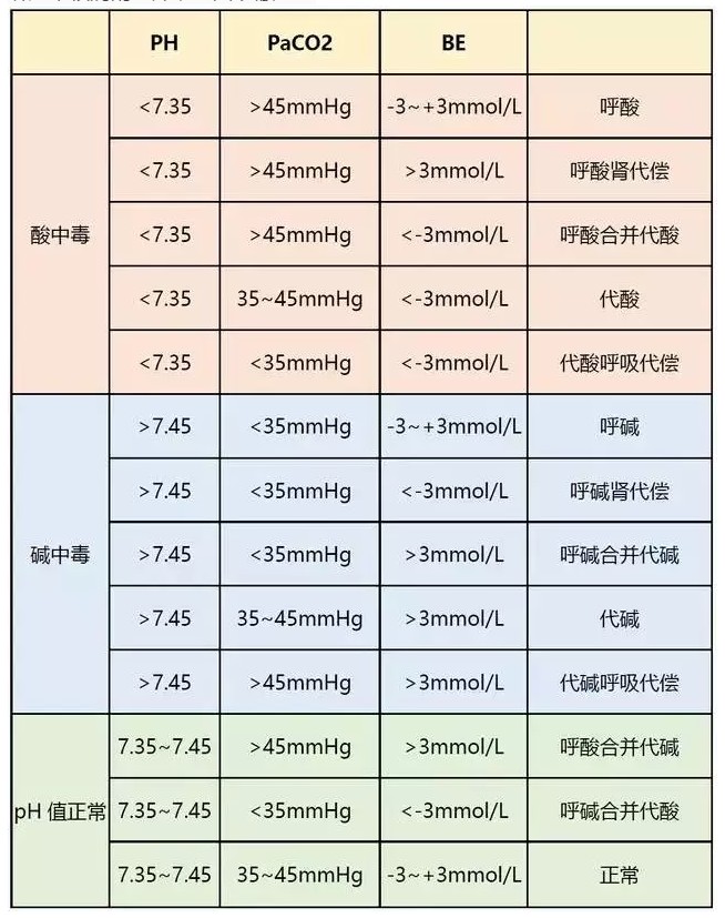 方法:看剩余堿BE,BE>3表示存在代堿,BE<-3表示存在代酸。
