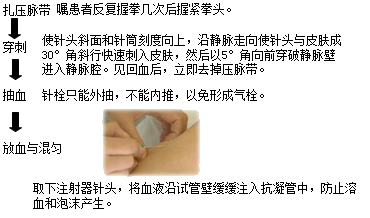 (2)按摩:輕輕按摩左手中指或無(wú)名指指端內(nèi)側(cè),使局部組織自然充血。