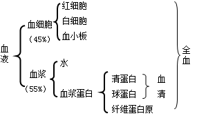①血量:正常人血量約為(70±10)ml/kg體重,成人約4~5L,約占體重的6%~8%。