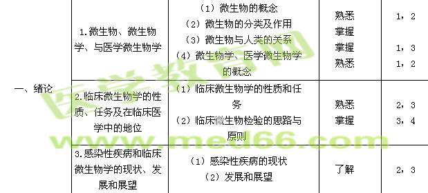 2.斑疹傷寒立克次體 | (1)臨床意義 (2)生物學(xué)特性 (3)微生物學(xué)檢測 | 熟悉 熟悉 掌握 | 2,3 1,3 3,4 | ||
