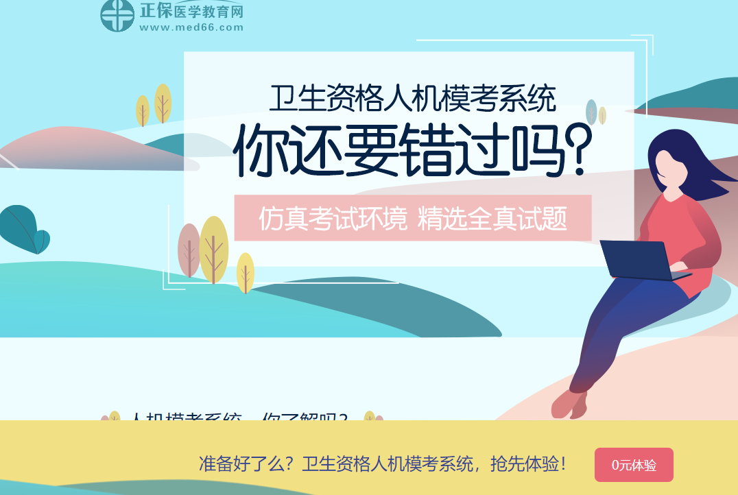 醫(yī)學(xué)教育網(wǎng)開發(fā)了與真實考試環(huán)境相同的人機??枷到y(tǒng),致力于幫助考生提前了解機考形式、適應(yīng)考試環(huán)境、熟悉答題規(guī)則,更加輕松的應(yīng)對考試。免費體驗人機考試>>