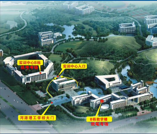 1、河源理工學(xué)??紙龇譃榧埞P考試考場和人機對話考試考場,所有考生從校門口進入,紙筆考試考場設(shè)在B棟教學(xué)樓2-5樓,人機對話考場設(shè)在實訓(xùn)中心B棟3-4樓,請考生留意考室分布圖和現(xiàn)場指引,避免走錯考場。