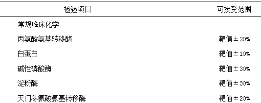 3、室間質(zhì)量評(píng)價(jià)的評(píng)價(jià)準(zhǔn)則作為分析質(zhì)量要求:美國(guó)臨床實(shí)驗(yàn)室改進(jìn)修正案’88(CLIA’88)能力驗(yàn)證(室間質(zhì)量評(píng)價(jià))分析質(zhì)量要求。此評(píng)價(jià)準(zhǔn)則也作為我國(guó)室間質(zhì)量評(píng)價(jià)的標(biāo)準(zhǔn)。