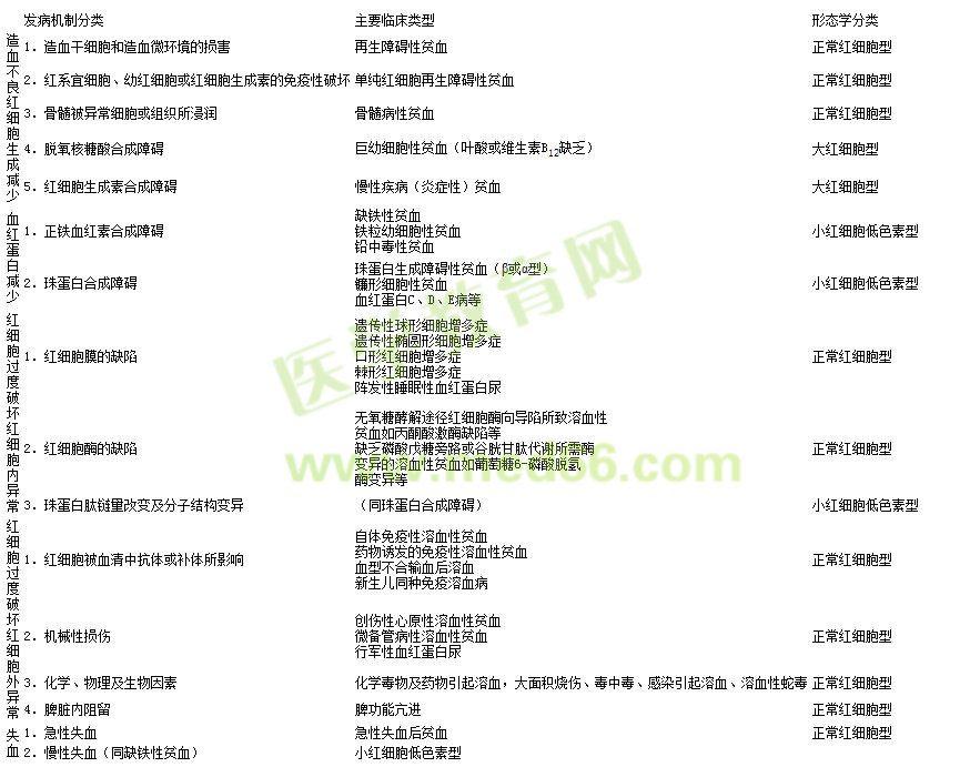 (2)減少:由于各種病因?qū)е轮車(chē)t細(xì)胞減少,即病理性貧血。按病因可將貧血分成造血不良、紅細(xì)胞過(guò)度破壞和失血三大類(lèi),其主要臨床類(lèi)型及形態(tài)學(xué)分類(lèi)的關(guān)系將在第三節(jié)中闡述。貧血的病因?qū)W分類(lèi)見(jiàn)表2-1