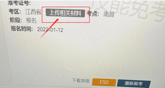 注:該頁面是否有“上傳相關(guān)材料”按鈕出現(xiàn),由考區(qū)進(jìn)行配置。