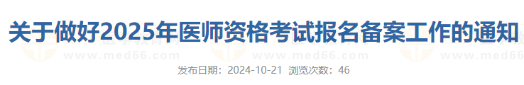 為做好2025年醫(yī)師資格考試報(bào)名備案工作,按照省醫(yī)考辦《關(guān)于做好2025年醫(yī)師資格考試備案工作的通知》(粵醫(yī)考辦〔2024〕30號(hào))要求,現(xiàn)將有關(guān)事項(xiàng)通知如下: