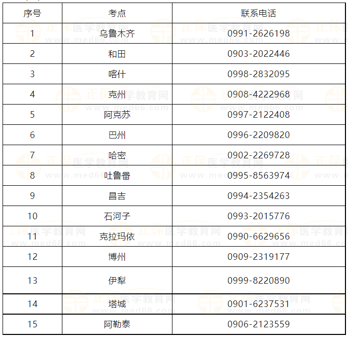 (三)新疆考區(qū)各考點聯(lián)系電話