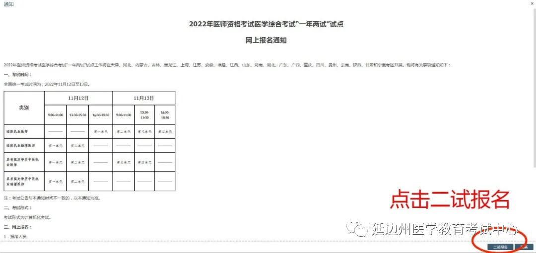 5.仔細閱讀彈出的通知,點擊右下角"二試報名"