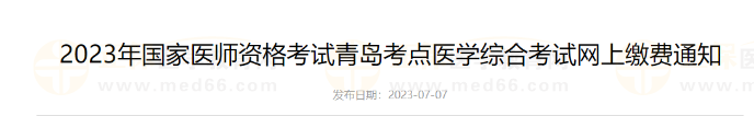 根據(jù)省醫(yī)考辦的工作安排,2023年青島考點(diǎn)國(guó)家醫(yī)師資格考試醫(yī)學(xué)綜合考試網(wǎng)上繳費(fèi)工作有關(guān)事項(xiàng)通知如下: