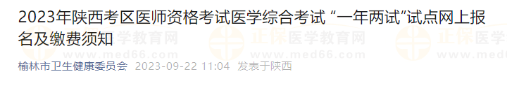 陜西榆林考點(diǎn)2023臨床執(zhí)業(yè)醫(yī)師(二試)報(bào)名繳費(fèi)9月22日開始!