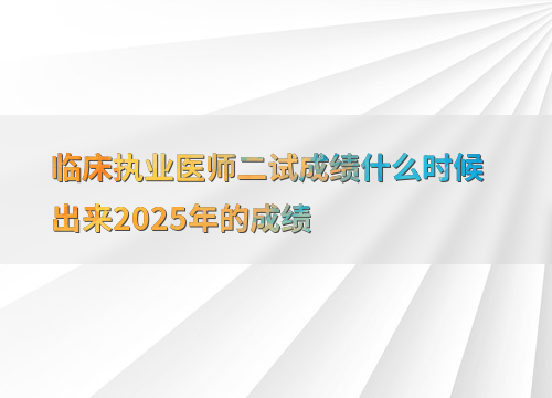 臨床執(zhí)業(yè)醫(yī)師二試成績什么時候出來2025年的成績