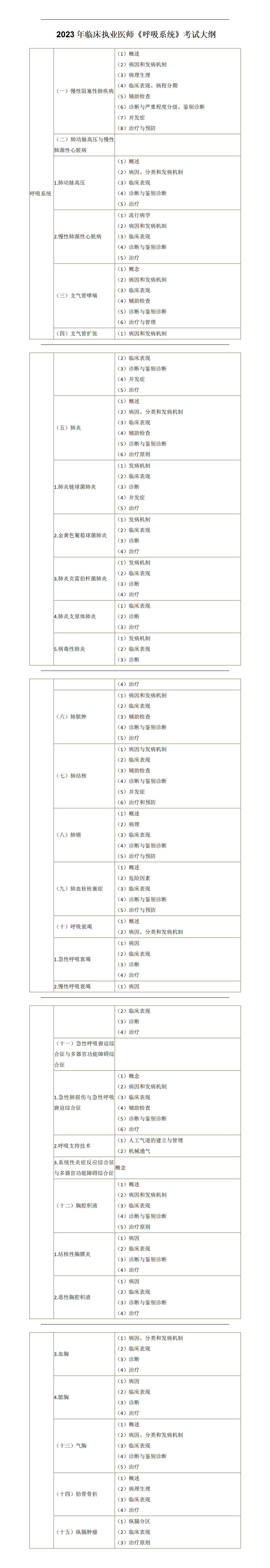 2023年臨床執(zhí)業(yè)醫(yī)師《呼吸系統(tǒng)》考試大綱完整版下載