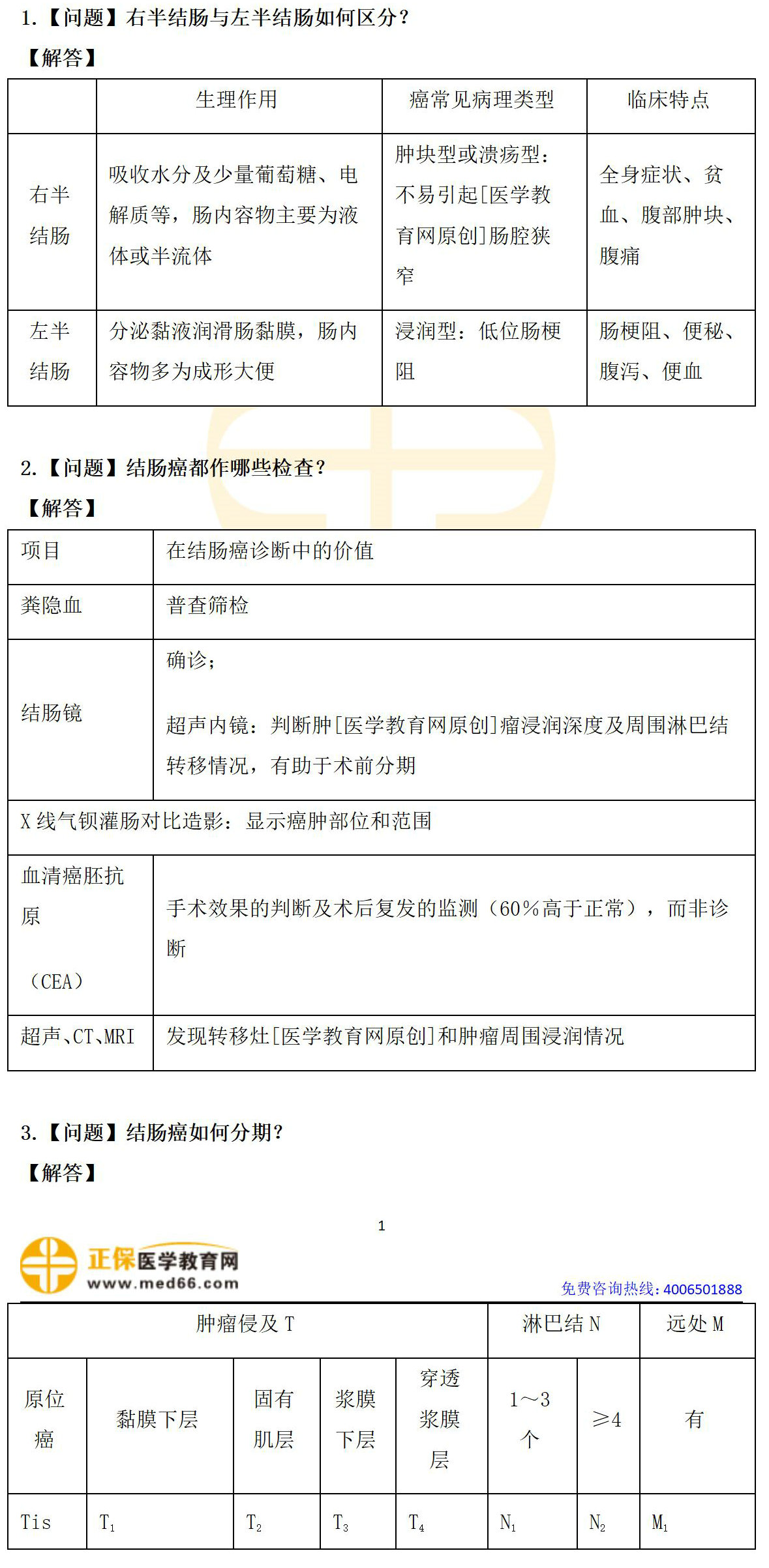 結(jié)腸癌是常見的發(fā)生于結(jié)腸部位的消化道惡性腫瘤,三張表格給大家總結(jié)考試常考點(diǎn),并且希望大家通過這三個(gè)表格[醫(yī)學(xué)教育網(wǎng)原創(chuàng)]掌握結(jié)腸癌相關(guān)知識(shí)點(diǎn),并避免考試丟分。