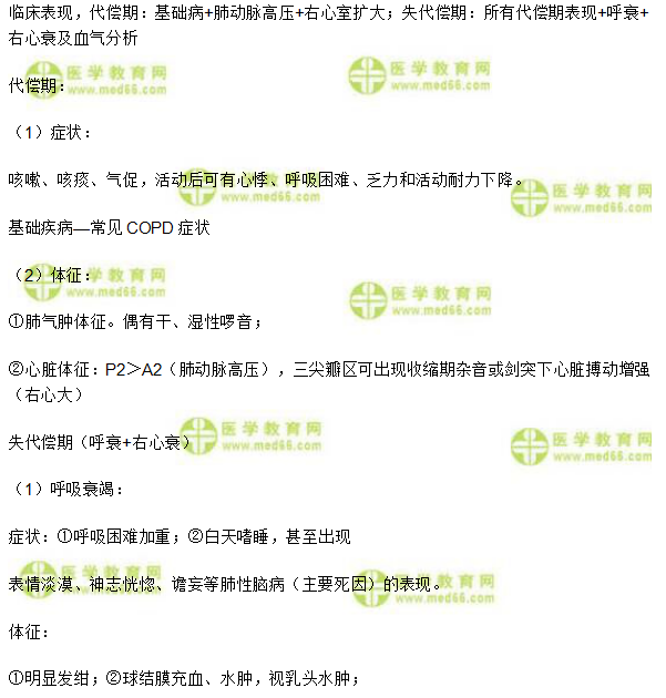 關(guān)于臨床執(zhí)業(yè)醫(yī)師《呼吸系統(tǒng)》:慢性肺源性心臟病的臨床表現(xiàn),相關(guān)考點(diǎn),相信備考2020年臨床執(zhí)業(yè)醫(yī)師考試的考生都在關(guān)注,為方便大家學(xué)習(xí),在此醫(yī)學(xué)教育網(wǎng)小編為大家整理如下內(nèi)容:
