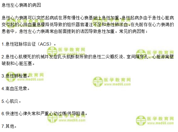 - · 急性左心衰竭的病因——臨床執(zhí)業(yè)醫(yī)師心血管系統(tǒng)考點精選
