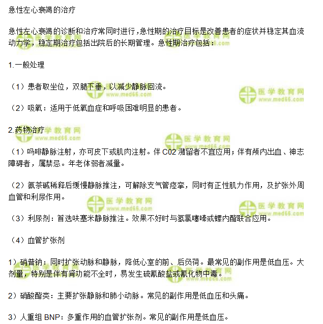 以上為“急性左心衰竭的治療——臨床執(zhí)業(yè)《心血管系統(tǒng)》”全部?jī)?nèi)容, 由醫(yī)學(xué)教育網(wǎng)小編整理,更多文章請(qǐng)隨時(shí)關(guān)注醫(yī)學(xué)教育網(wǎng)臨床執(zhí)業(yè)醫(yī)師考試欄目!