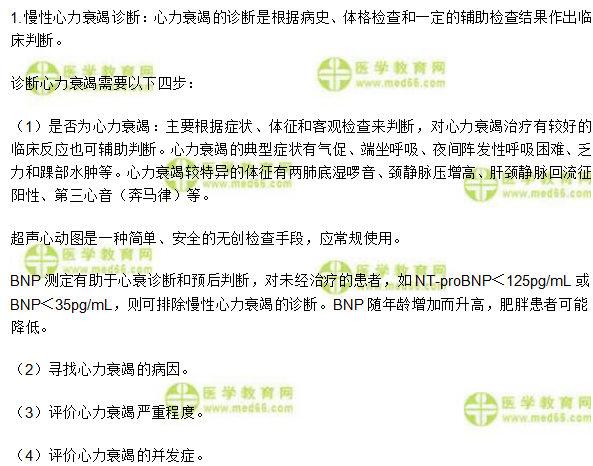 關(guān)于臨床執(zhí)業(yè)《心血管系統(tǒng)》考點:“慢性心力衰竭的診斷與鑒別診斷”相關(guān)內(nèi)容,相信參加2020年臨床執(zhí)業(yè)醫(yī)師考試的考生都在關(guān)注,為方便大家備考,在此醫(yī)學(xué)教育網(wǎng)小編為大家整理如下內(nèi)容:
