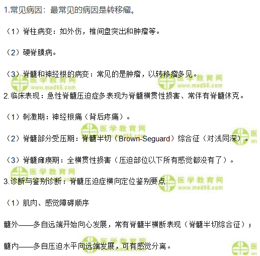 針對臨床執(zhí)業(yè)醫(yī)師精神神經(jīng)系統(tǒng)中“脊髓壓迫癥”相關(guān)考點,相信大家都在認真學習,為提高備考效率,在此醫(yī)學教育網(wǎng)小編為大家整理如下內(nèi)容: