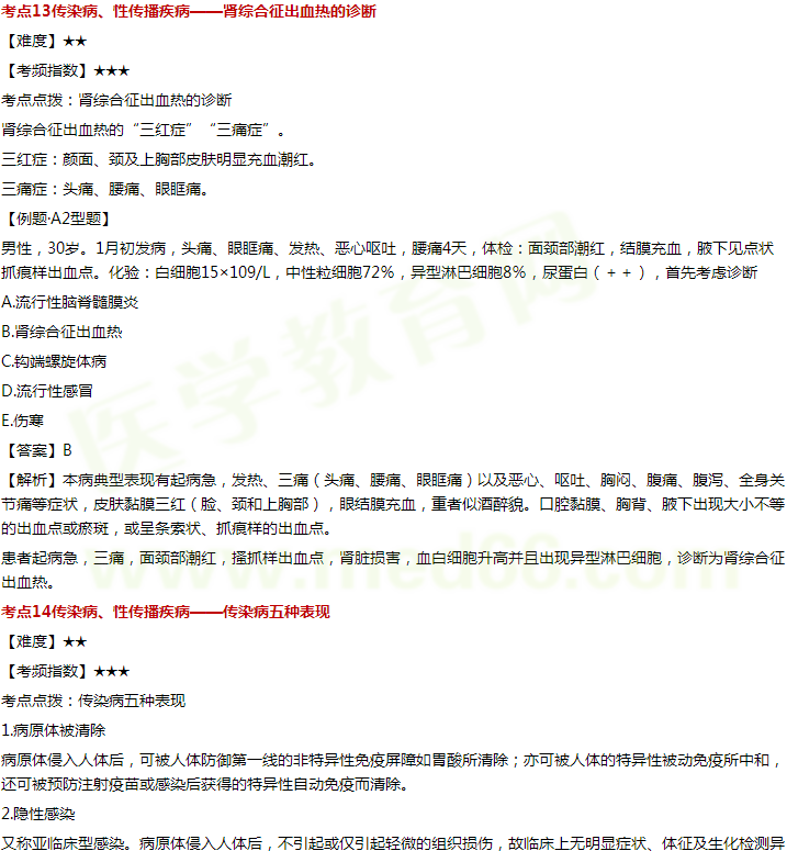腎綜合征出血熱的診斷/傳染病五種表現(xiàn)/尖銳濕疣(傳染病科目)