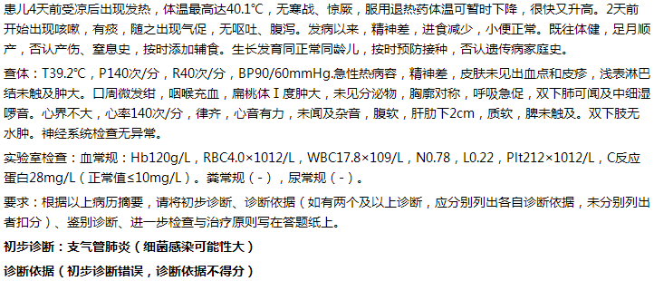病史摘要:女孩,3歲半。發(fā)熱4天,咳嗽、氣促2天。