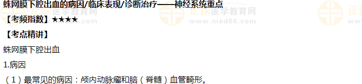 蛛網(wǎng)膜下腔出血的病因/臨床表現(xiàn)/診斷治療——神經(jīng)系統(tǒng)重點